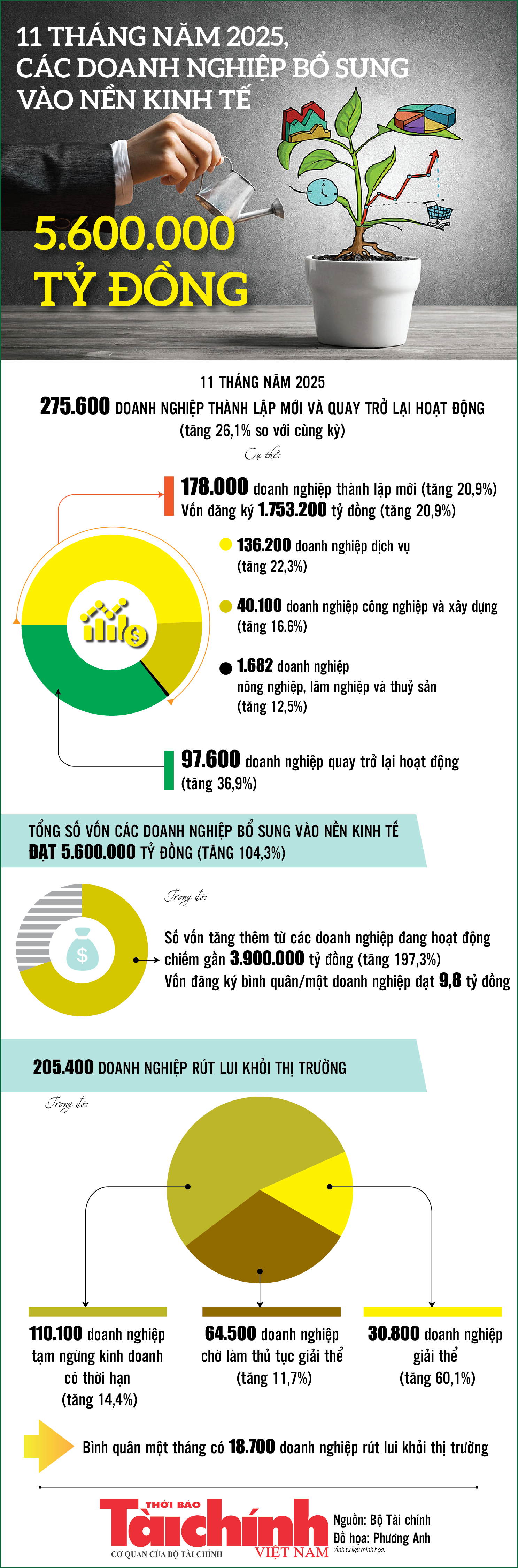 Infographics: 11 tháng năm 2025, các doanh nghiệp bổ sung vào nền kinh tế 5.600.000 tỷ đồng