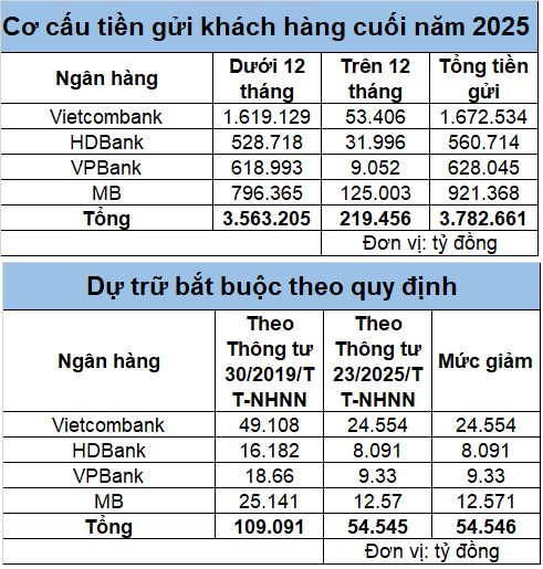 Theo tính toán của nhóm phân tích Công ty cổ phần Chứng khoán MB (MBS), tính đến cuối năm 2025, tổng tiền gửi khách hàng của 4 ngân hàng nhận chuyển giao bắt buộc đạt khoảng 3,78 triệu tỷ đồng.